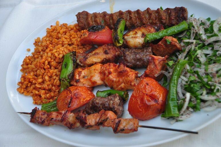 TYRKISK GRILLMATAlle grillretter serveres med bulgur (Tyrkisk hveteris), salat, tzatziki og brød med hvitløksmør | |